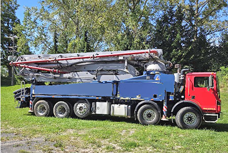 Boom pumps are truck-mounted concrete pumps with multi-section folding booms that can reach more than 100-meters. They pump concrete at a controlled rate, precisely where it is needed in areas inaccessible to concrete trucks and thereby drastically reduce the cost of labor and speed up construction.